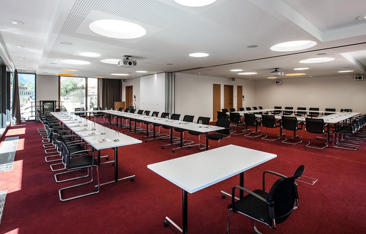 Die beiden Seminarräume San Jon und Sur En können durch das Öffnen der schalldichten Schiebewand zu einem Raum kombiniert werden. Ideal z.B. für Kundenevents oder Vorträge mit Stehapéro.