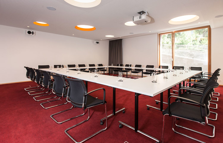 Unsere Seminar und Konferenz Räume in der Chasa Nova lassen keine Wünsche offen. Zwei der Räume sind durch eine schalldichte Schiebetüre verbunden und bieten auf Wunsch zusammengefasst Raum für bis zu 130 Personen – unsere technische Infrastruktur ist auf dem neuesten Stand. Funkmikrofone, Akustikdecken, fest installierte Beamer, indirekte Beleuchtung, gleichzeitige Präsentation auf zwei Leinwänden. Sämtliche Räume verfügen über Beamer, TV/DVD und kostenloses WLAN (400 Mbps).