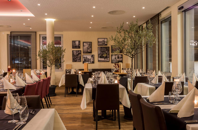 Das Ristorante befindet sich 2 Gehminuten vom Hotel entfernt. Es bietet italienische Spezialitäten wie hausgemachte Teigwaren, Fisch- und Fleischspeisen vom Grill und Pizzen direkt aus dem Holzofen, bei einem edlen, italienischen Wein.