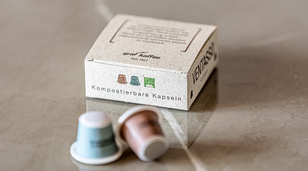 Kaffeekapseln sind ein komfortabler Weg, einen guten Kaffee zu geniessen und besonders in den Hotelzimmern eine saubere Angelegenheit. Die Nachhaltigkeit von Kapseln wird aber heiss diskutiert. Einen Schritt in die richtige Richtung hat das Familienunternehmen Graf-Kaffee aus Baden-Dättwil gemacht und vertreibt Ihren Kaffee neu in kompostierbaren Kapseln.