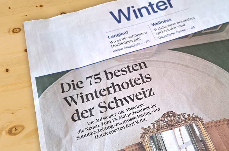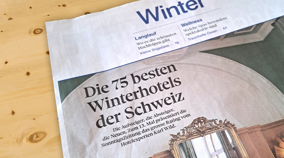 Im aktuellen Rating der «75 besten Winterhotels» in der Sonntagszeitung konnten wir unsere Platzierung unter den «25 besten Winterhotels mit 4 Sternen» auch in diesem Jahr halten, worüber wir uns sehr freuen.