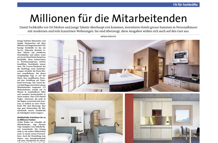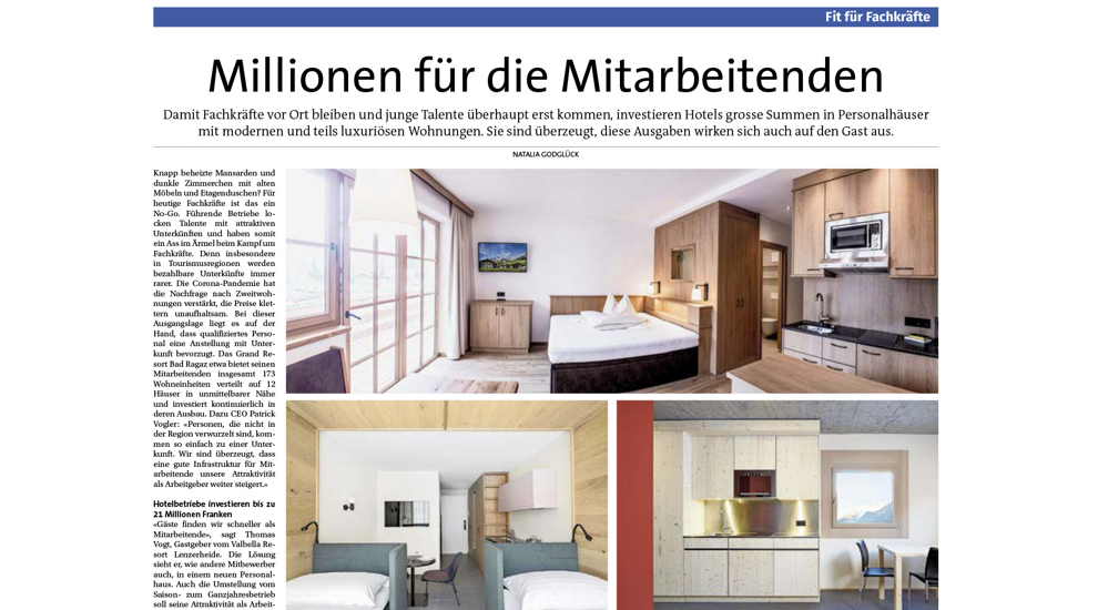 To ensure that skilled employees stay on site and young talents even come in the first place, hotels invest large sums in staff houses with modern and sometimes luxurious flats. They are convinced that this investment also has an impact on the guests.