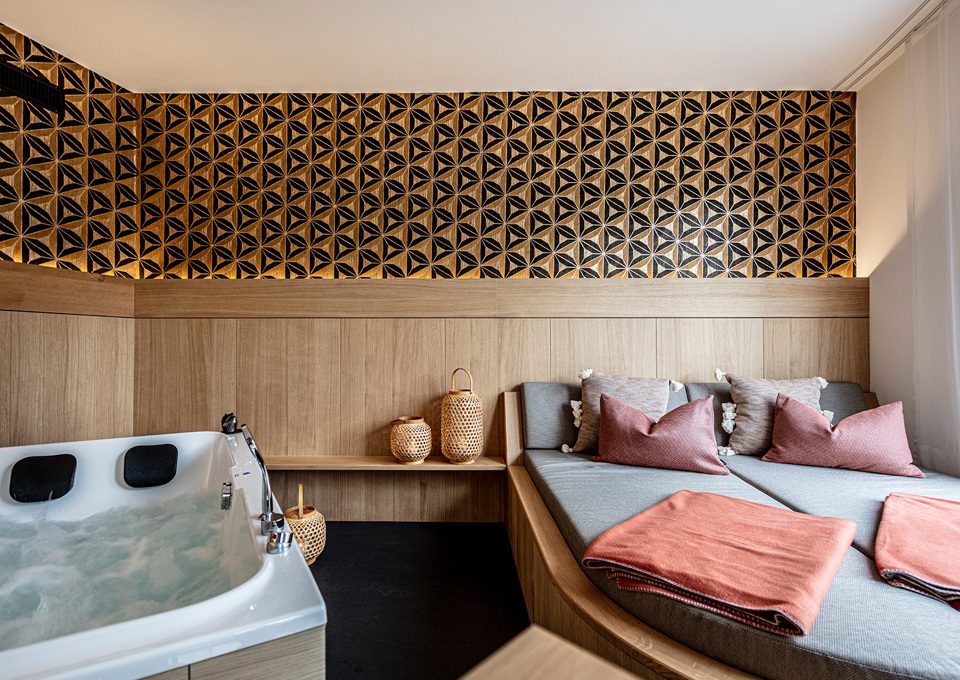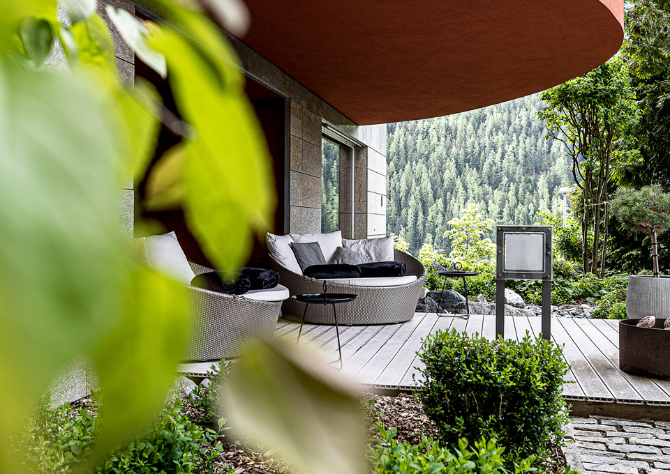 Find peace and relaxation in the Vita Nova wellness area with whirlpool tubs, experience showers, Finnish and bio sauna, steam bath, Kneipp pool, relaxation room cube and sunbathing lawn with a view of the Lower Engadine mountains. External guests can also make use of our SPA and wellness offer.